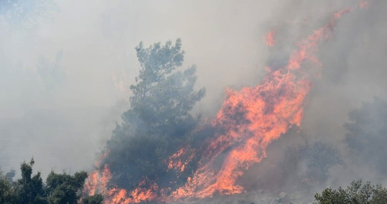 Aydın'ın efeler ilçesi i̇mamköy mevkisinin üst kesimlerinde zeytin ve incir ağaçlarının bulunduğu arazide henüz belirlenemeyen nedenle yangın çıktı.
